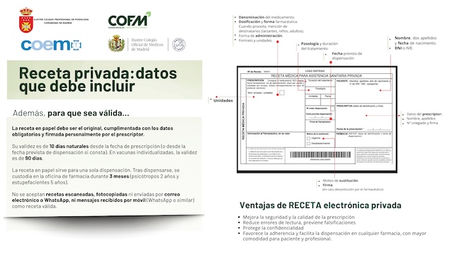 Médicos, odontólogos, podólogos y farmacéuticos de la Comunidad de Madrid unifican la información sobre la receta médica para la asistencia privada
