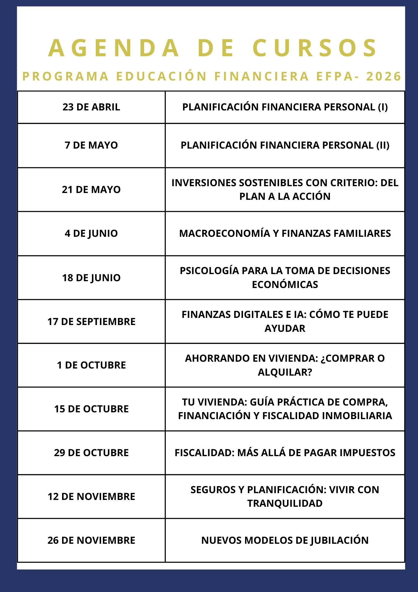Programa Educación Financiera EFPA 2026- Psicología para la toma de decisiones económicas