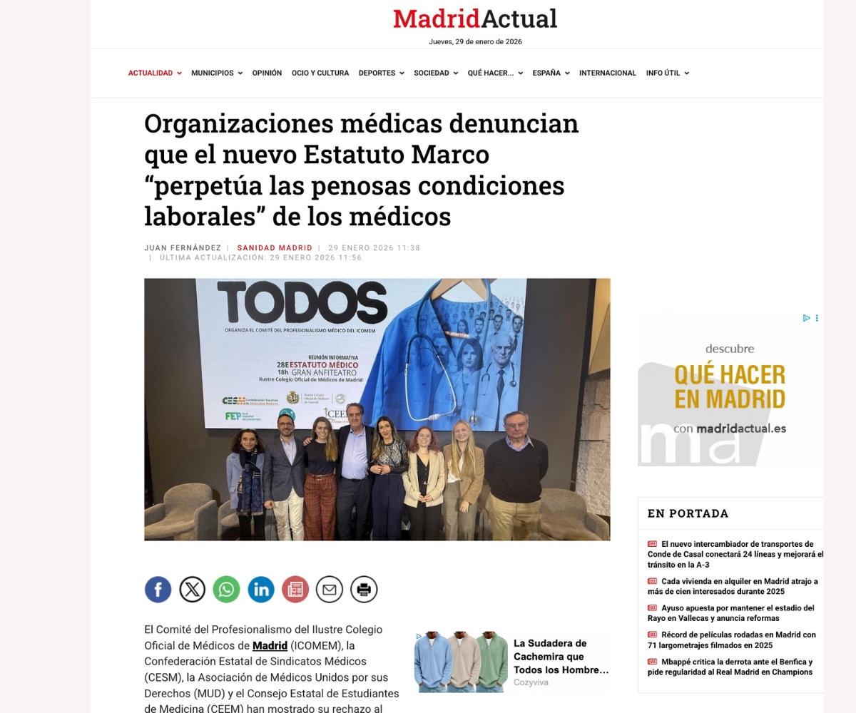 El Estatuto Marco está aprobado, pero el debate sigue abierto. La jornada celebrada en el ICOMEM marca un punto de partida para articular propuestas y trasladar con claridad qué necesita hoy la profesión médica.
