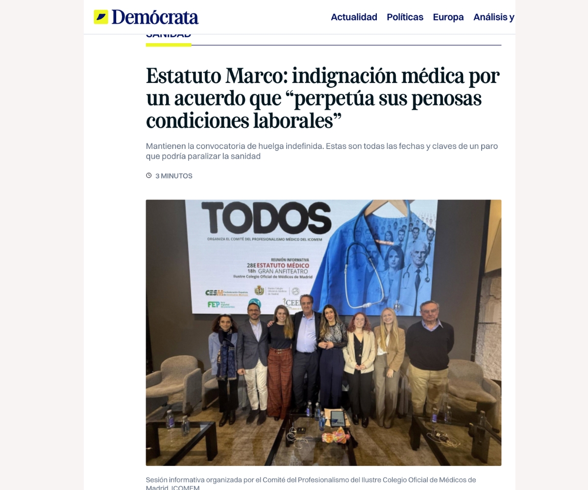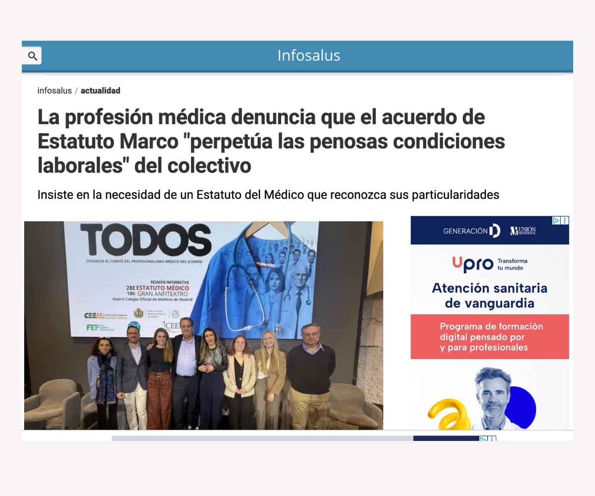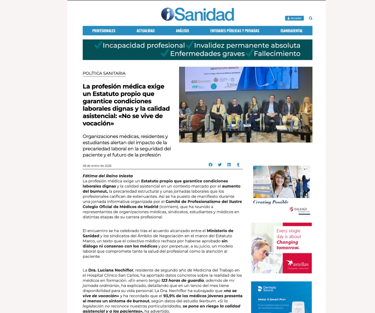 El Comité de Profesionalismo del Ilustre Colegio Oficial de Médicos de Madrid aborda este tema porque el Estatuto Médico no es solo una cuestión normativa, sino un asunto que afecta directamente a los valores, las condiciones y los límites del ejercicio profesional. Guardias, carga asistencial, capacidad de decisión clínica, responsabilidad profesional y calidad de la atención forman parte del núcleo del profesionalismo médico y determinan cómo se ejerce la medicina cada día. Por ello, este Comité asume la tarea de analizar, informar y promover una reflexión colectiva que permita a la profesión comprender el impacto real de este nuevo marco y defender un ejercicio médico acorde con sus principios.